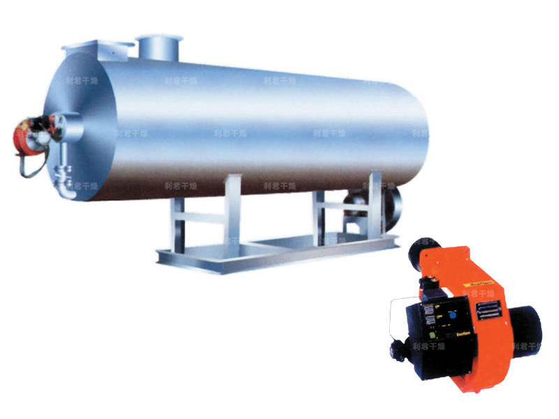 燃料通過燃燒器燃燒,產生高溫燃氣。并借助具有強化換熱措施的熱風爐將高溫燃氣的熱量傳導給被加熱的空氣,高溫燃氣經熱量散發后溫度降低至250℃后排到大氣中。需加熱的空氣通過選配的鼓風機強送入熱風爐,吸熱后溫度升至額定值從熱風出口處送出,當熱風溫度達到額定溫度上限時,燃燒器會自動停止燃燒或自動轉為小火焰燃燒,當熱風溫度降低到額定下限溫度時,燃燒器又會重新點燃運行或轉為大火燃燒,升溫的速度可以調節進風閥的開度來實現。